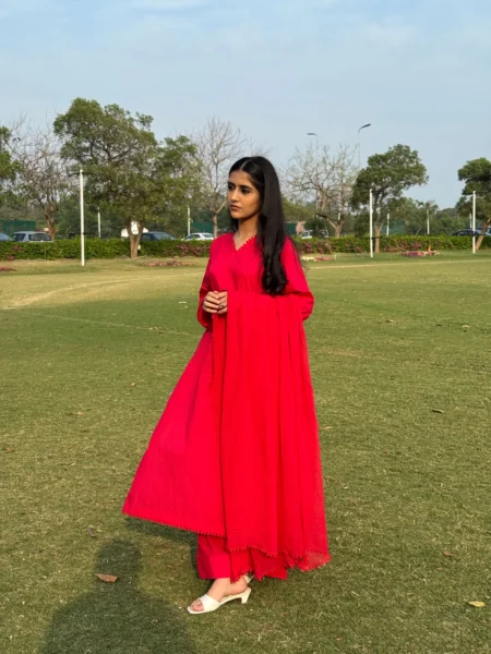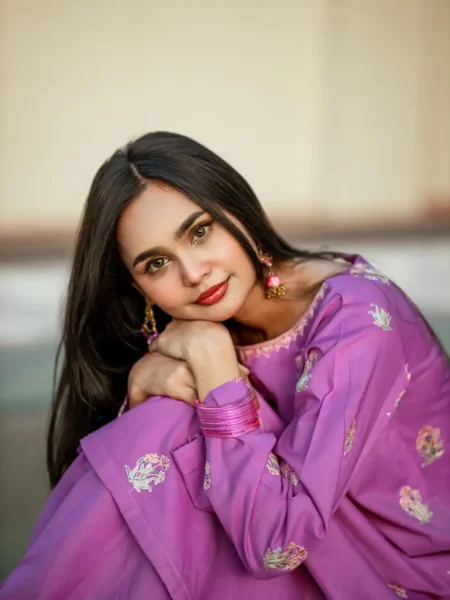 Drape yourself in elegance with this striking 3-piece navy blue ensemble, perfect for festive evenings. The organza shirt features shimmering sequin detailing that adds a touch of glamour, beautifully paired with a sparkle-embellished organza dupatta. The look is completed with a flowy silk umbrella-cut trouser that enhances movement and grace.…